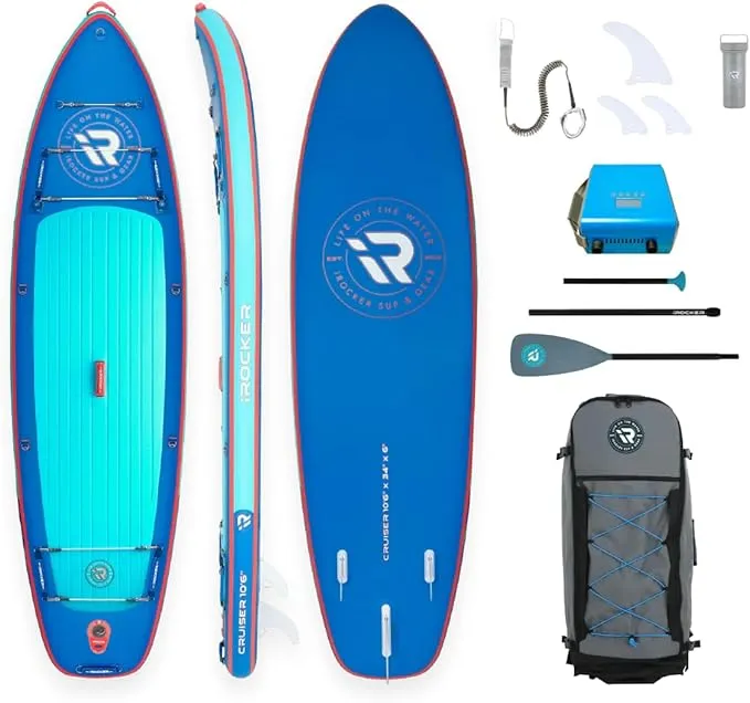 Amazon.com - Includes: 1 X 10’6/3.2m CRUISER 10'6"", 3 X Removable Nylon SUP Fins (1 Center Fin and 2 Side Fins), 1 X 10'/3m Leash With Key Stash Spot, 1 X 3-Piece Hexa-Edge Carbon Paddle, 1 X iROCKER Universal Wheeled Backpack, 1 X Electric Pump, 1 X Repair Kit (Patches And Valve Wrench, Glue Sold Separately)