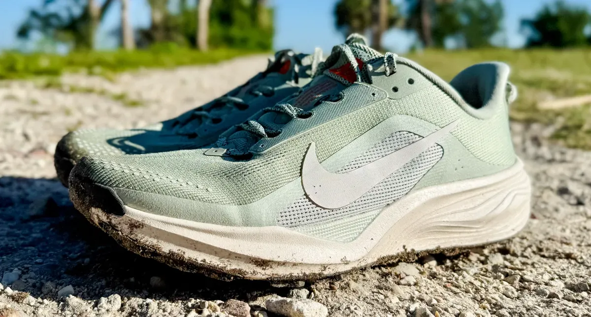 If your days involve road, gravel, and trail, a road-to-trail shoe is the right call. The Nike ACG Pegasus Trail was specifically built for this, its ATC 2.0 outsole transitions between surfaces without the grinding inefficiency of aggressive lugs on tarmac, and the ReactX foam handles the pavement sections as well as the dirt ones.