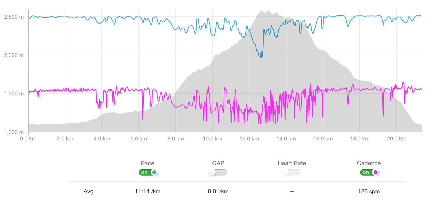 I really appreciated that there were so many checkpoints along the route. Almost every 5km in fact! Because of the terrain and climbing the gap in time was actually quite a while, but I never felt the need for one sooner than it came. So kudos on Buff for this!