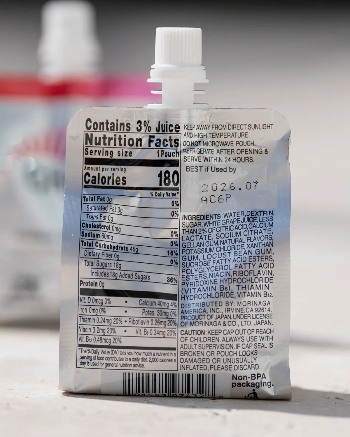 Each pouch delivers a quick hit of digestible carbs (mainly dextrin), B-vitamins, and electrolytes without any stimulants, allergens, or artificial sweeteners.