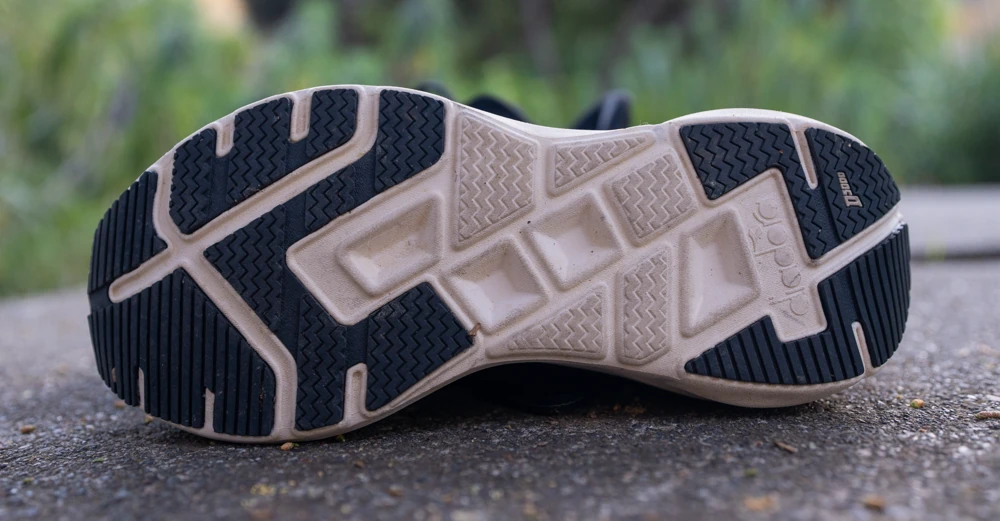 Although I found the traction to be pretty good overall, distribution and coverage of rubber compound, could be improved. The Duratech 5000 outsole grips well on clean, wet, or dry surfaces but the white areas (pictured below) are exposed midsole foam, which, as you can imagine, is less durable and far less grippy.