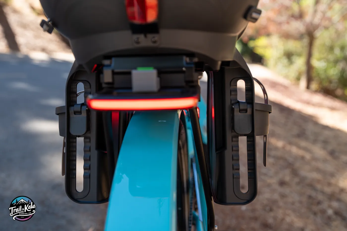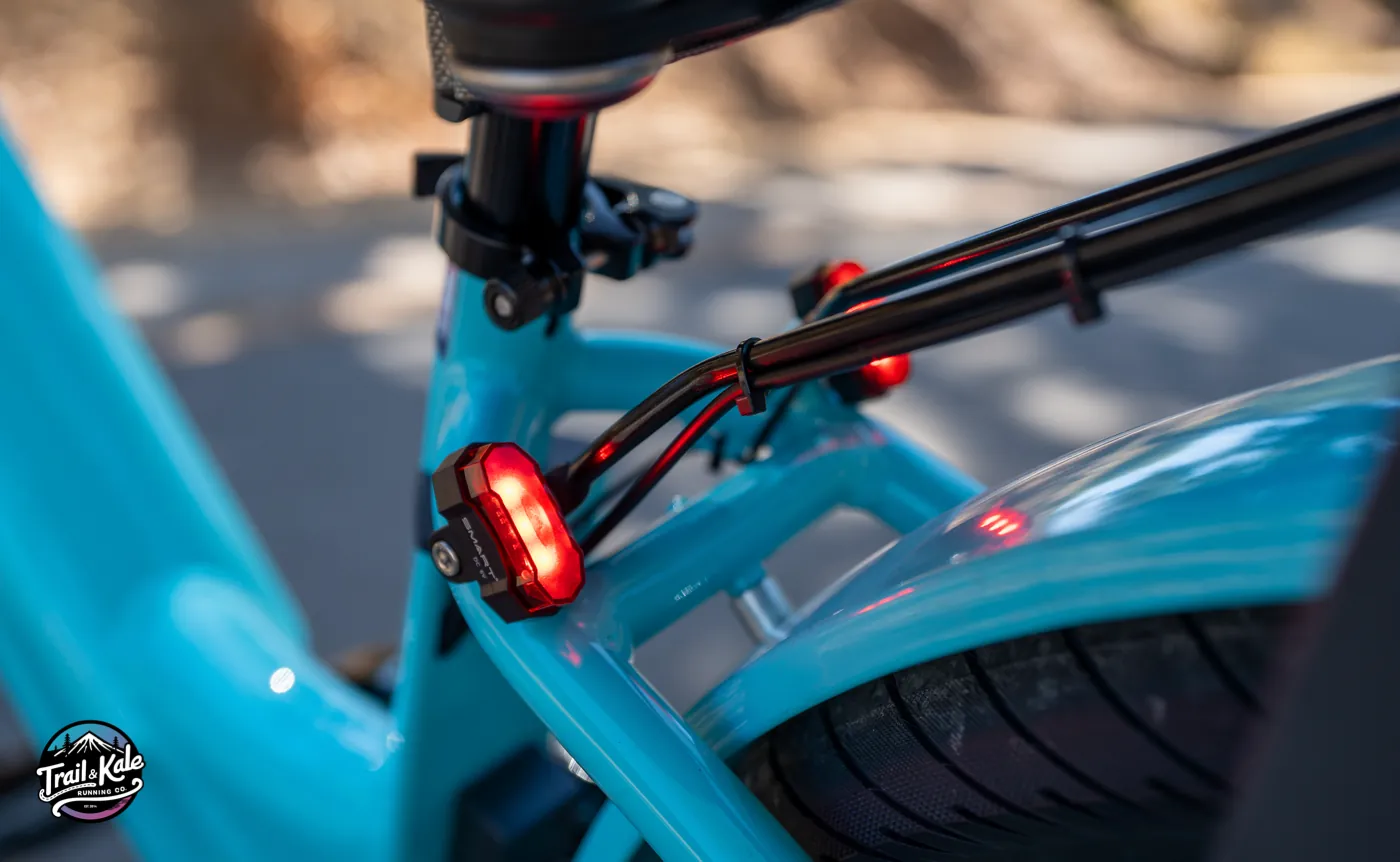 Speaking of visibility, the integrated LED front and rear lights are essential for those early morning or late afternoon daycare runs - to turn on the lights, simply hold down the top button on the controller. The reflective sidewalls on the Rhino tires also help ensure we’re visible to cars and other cyclists, especially from side-on, an angle where your main lights may be less visible from.