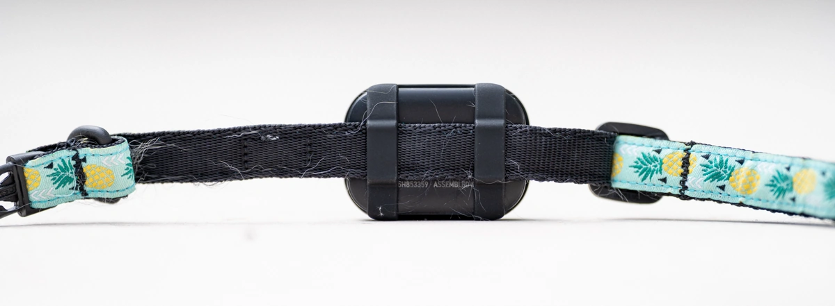 No collar swaps required either, it works with my favorite Pineapple pattern one that my humans bought me when we moved to Florida.