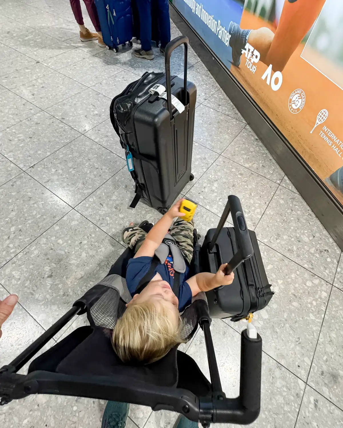It’s also a decent place to stash items you’ll need quick access to (like snacks or layers) during travel. We stored some emergency Hotwheels cars and plastic dinosaurs in there for our son, Seb, and that turned out to be a great little toddlert hack.