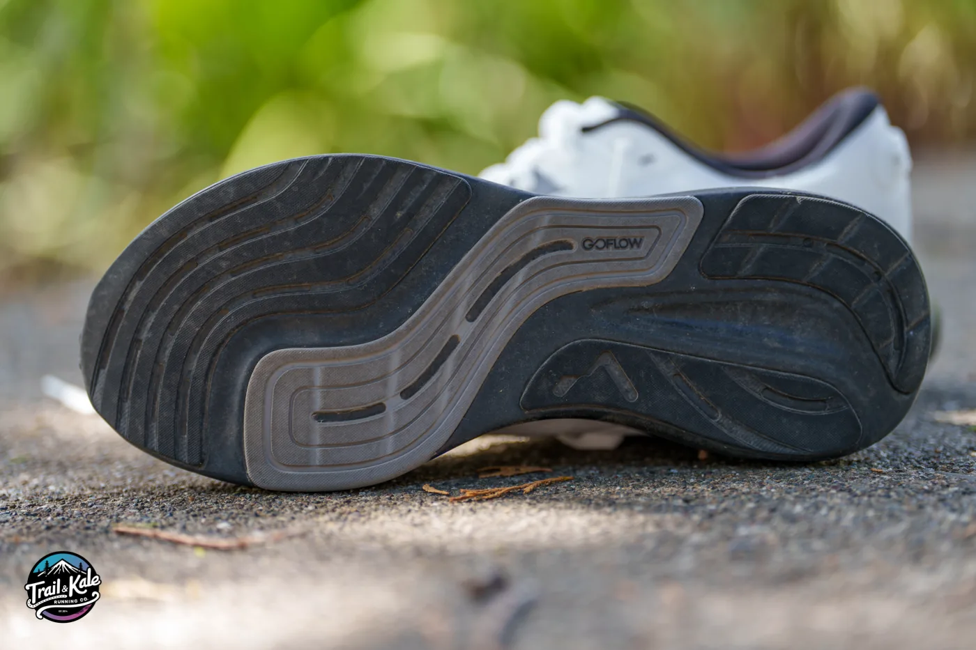 Traction-wise, the P1 features an outsole with GoFlow technology that provides good grip on various surfaces. The rubber outsole, with its flexible design and strategically placed ridges, allows for natural foot movement and biomechanically correct flex, which enhances both comfort and performance.