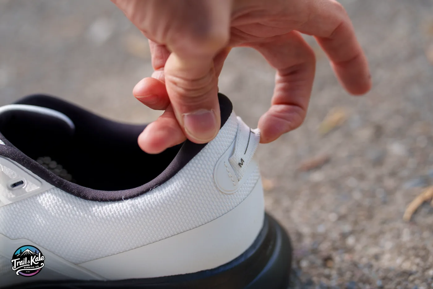 The finger pull at the rear of the shoe, designed to help you get them on more easily, is another feature that could use some refinement. It’s quite small and not very functional; a larger, more accessible pull loop could improve the overall user experience.
