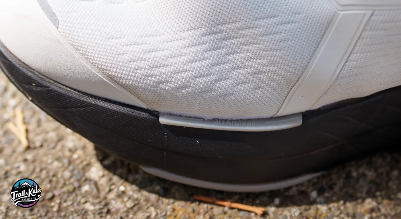 The 3D Arch Rail is a new feature from Mount To Coast; it's a plastic plate positioned just beneath the foot, which adds a layer of structured support, especially helpful for those with overpronation issues. It's an innovation that seems to work very well, providing the kind of stability you'd expect from a much heavier shoe.