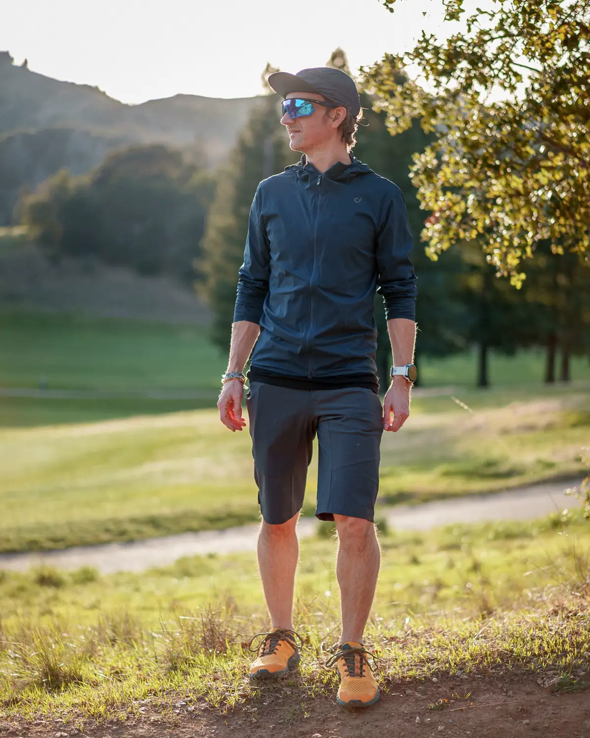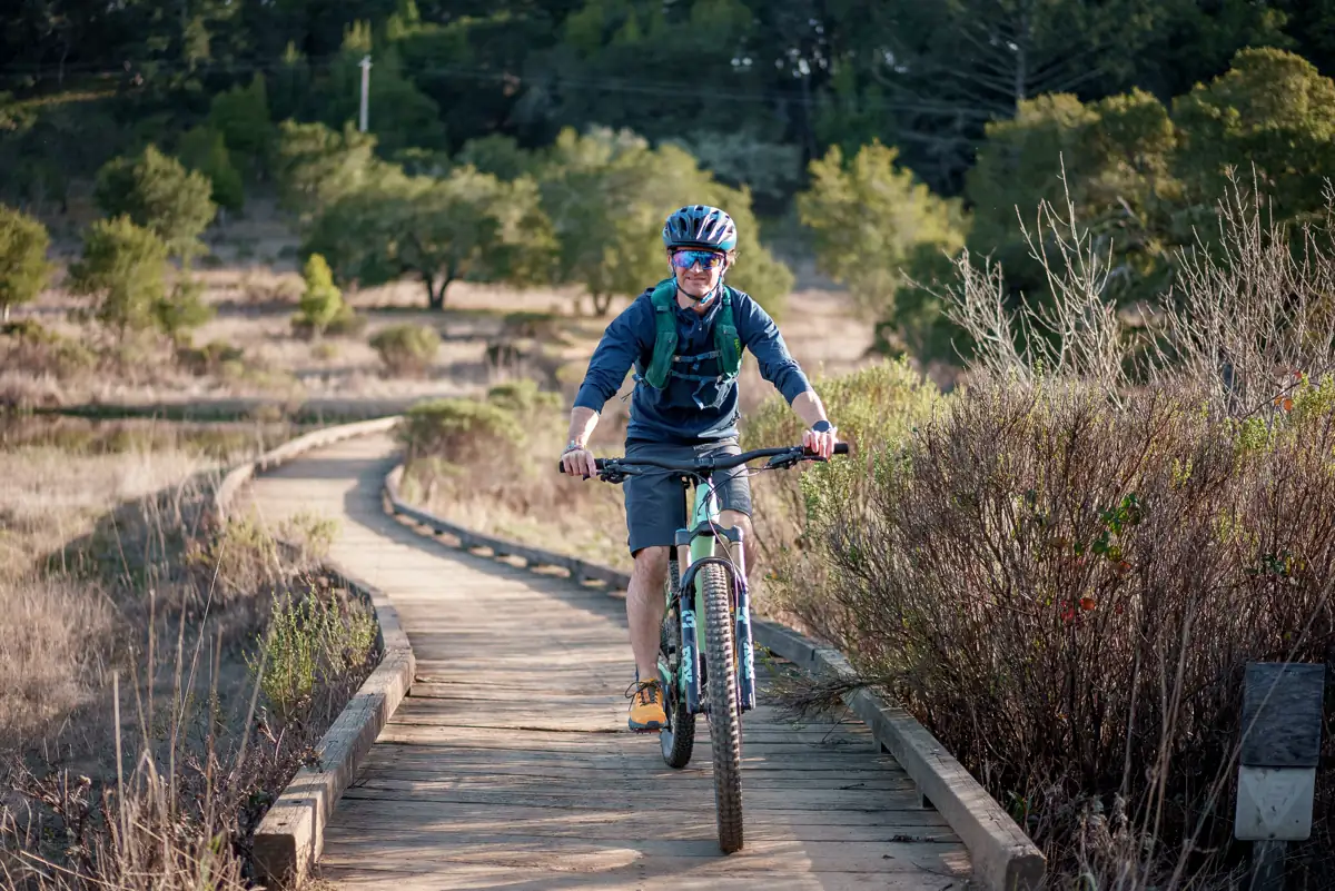 Like trail running and hiking, these clothes should all be made from technical, sweat-wicking materials that will help keep you comfortable and your temperature regulated as you ride.