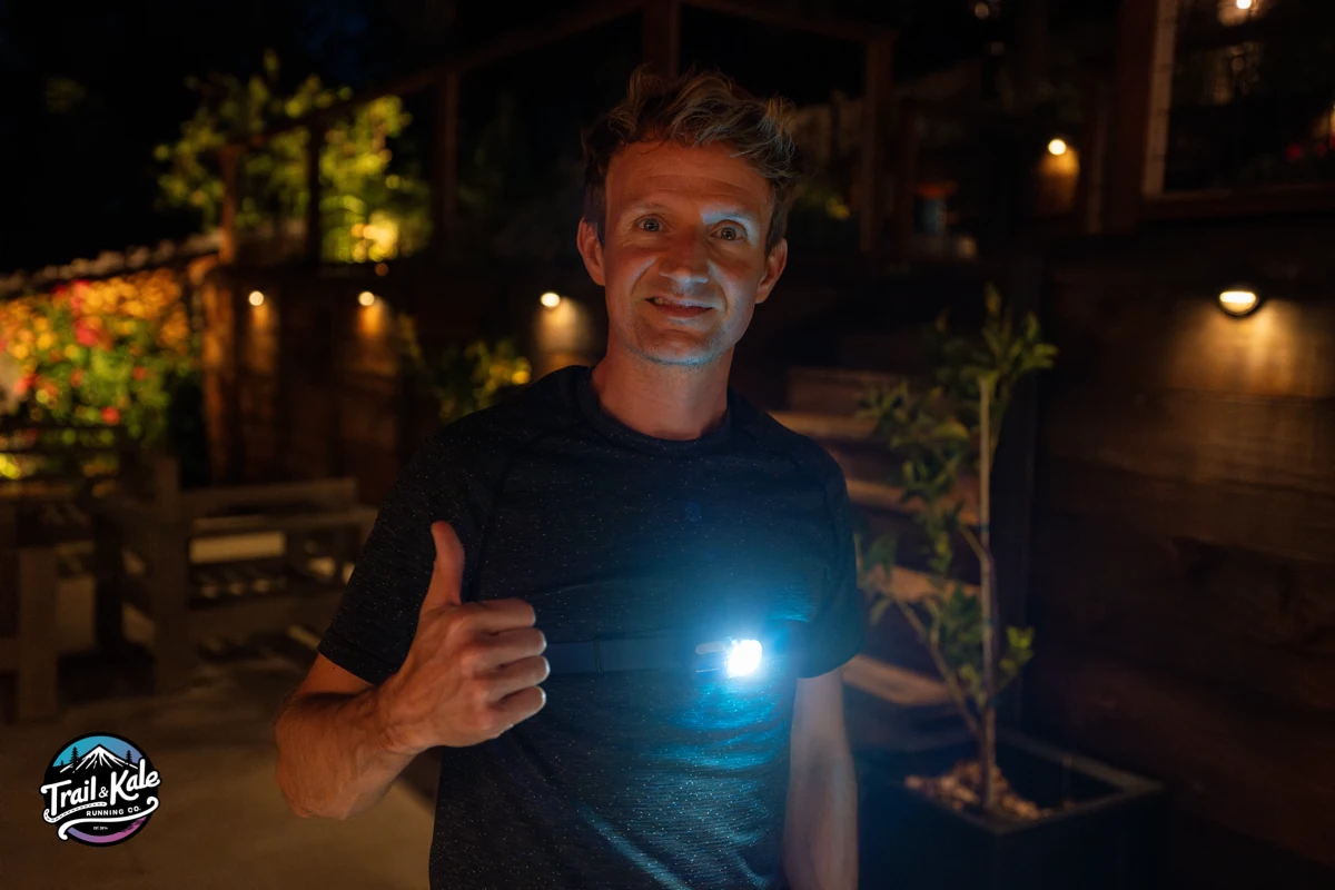 It’s also good for not blinding other runners or walkers, something I appreciated when l'm lining up for an early morning trail race and everyone has headlamps on, like at Kodiak 50K in Big Bear, California, pictured below - headlamps everywhere in the background.
