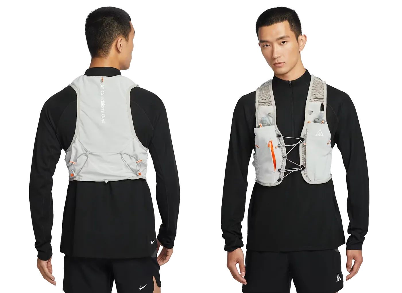 The ACG GOAT Pack Vest 5L ($130) covers it. Five litres is the right size for two to four hours of self-sufficient trail running, soft flasks, nutrition, a packable layer, the essentials. The fit is built specifically for running rather than hiking, so it stays snug without bouncing on technical terrain.
