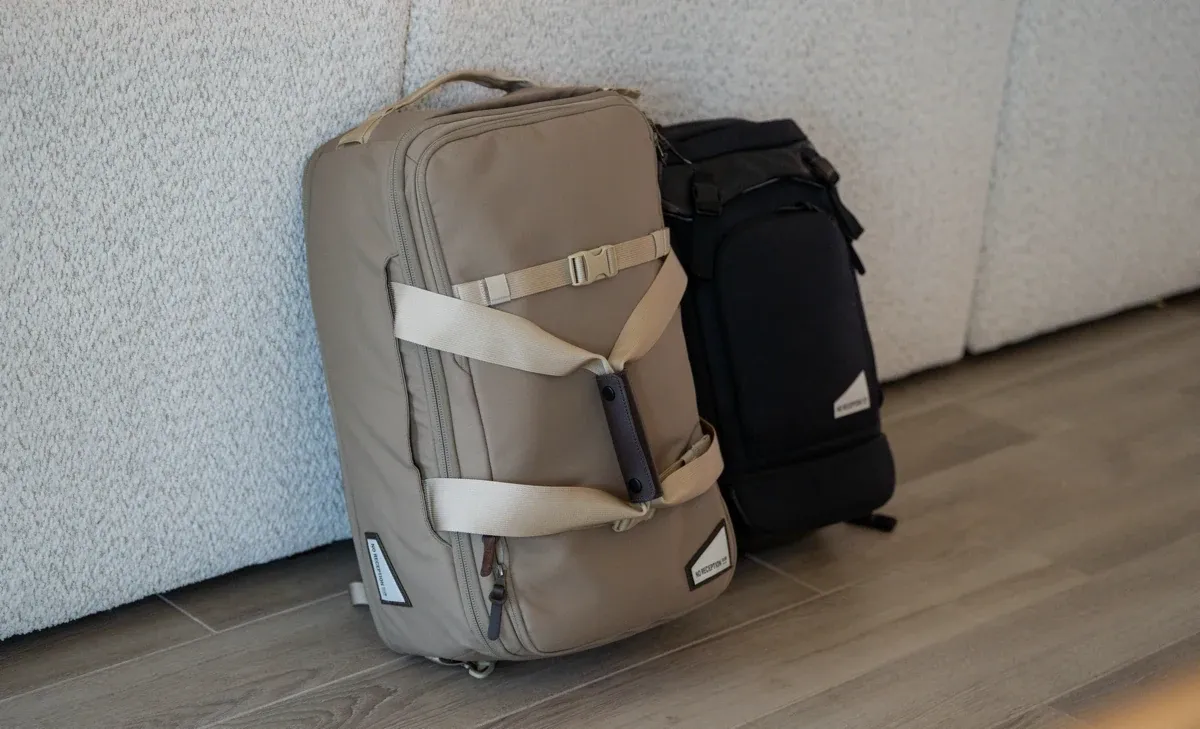 Then, a few months later, the Hideaway Carry-On Duffel. The Getaway Bag has been with us on flights, road trips, day hikes, and enough ordinary Tuesdays with Sebastian that I feel like I've earned the right to say something honest about them.