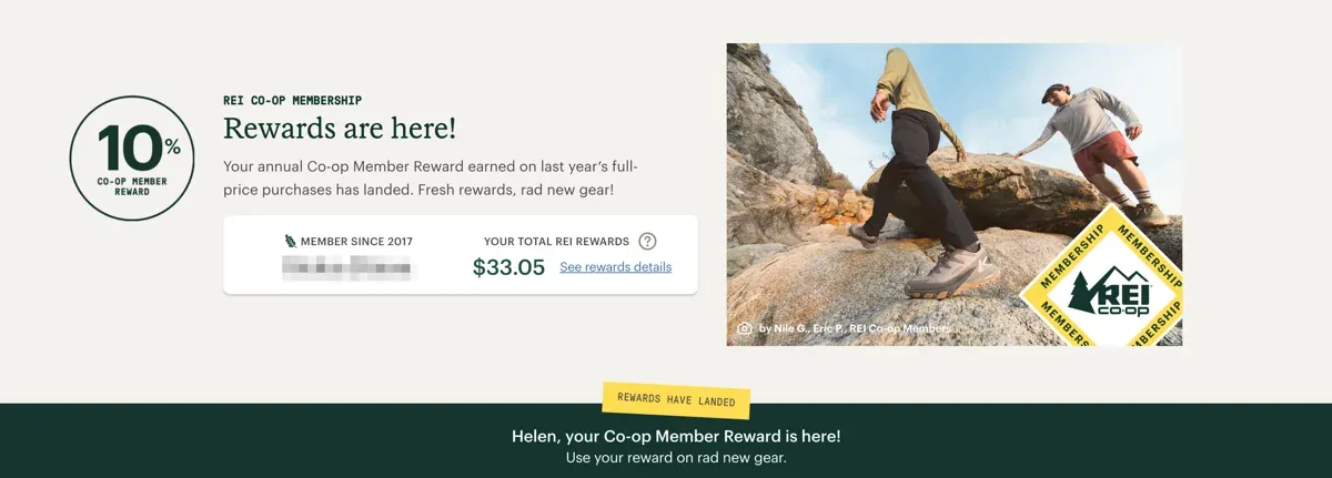 I checked my REI account this morning and found $33.05 in fresh Co-op Member Rewards waiting for me.
