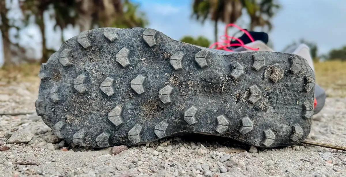 On hard-packed and rocky trails, where small bits of trail debris can create that constant low-level underfoot fatigue, the geometry helps spread pressure more evenly and softens the sting of repeated impacts.