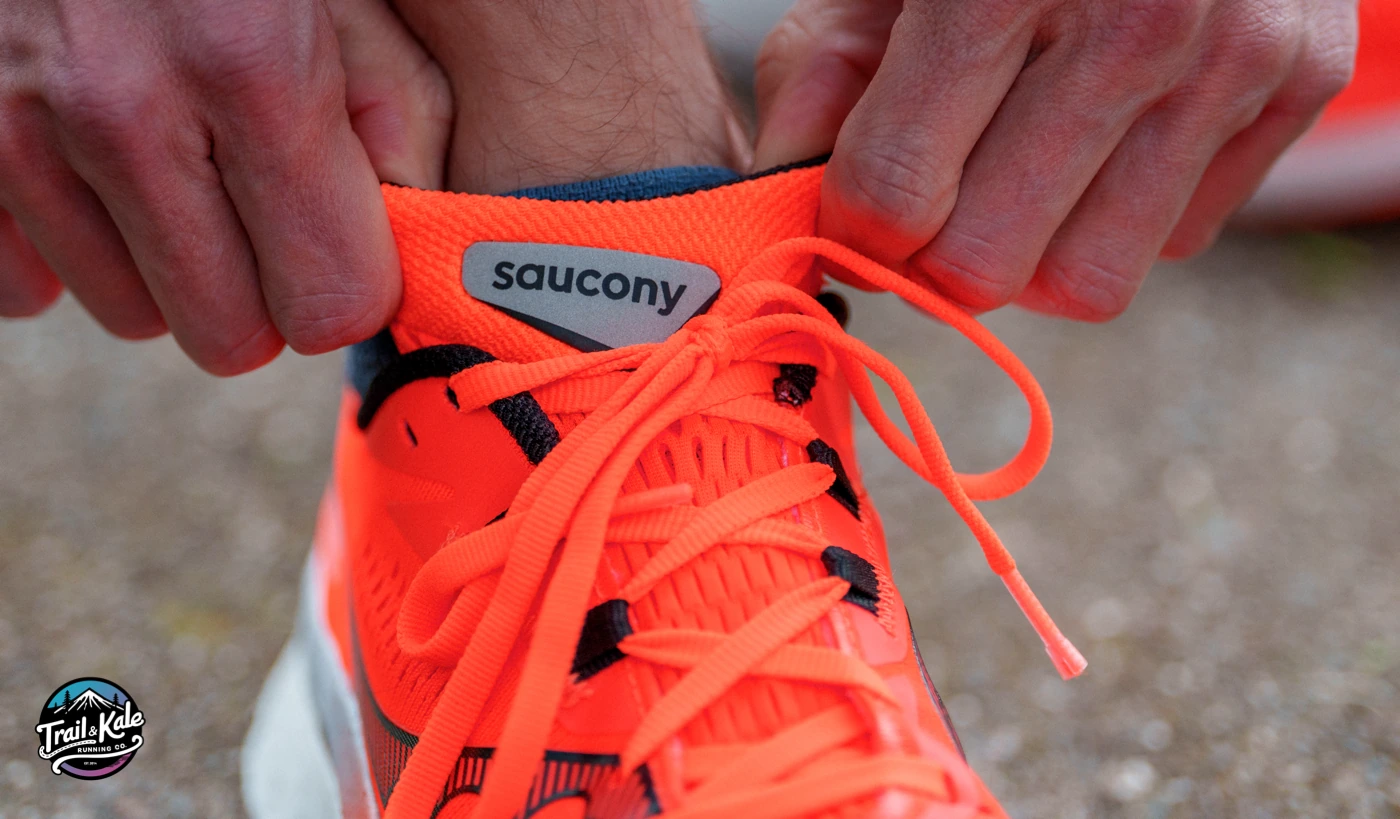 The pair I have, sent by Saucony, is my usual size (US(M)9), and they provide a comfortable airy fit with plenty of space, and the upper material cinches down nicely, offering a secure, hugging feel around my feet, thanks to an effective lacing system.
