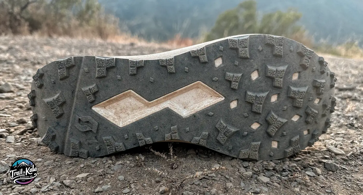 The outsole, designed with a radial pattern, digs into the trail effectively and each step feels secure, with the carbon plate's propulsion aiding in maintaining a steady pace.