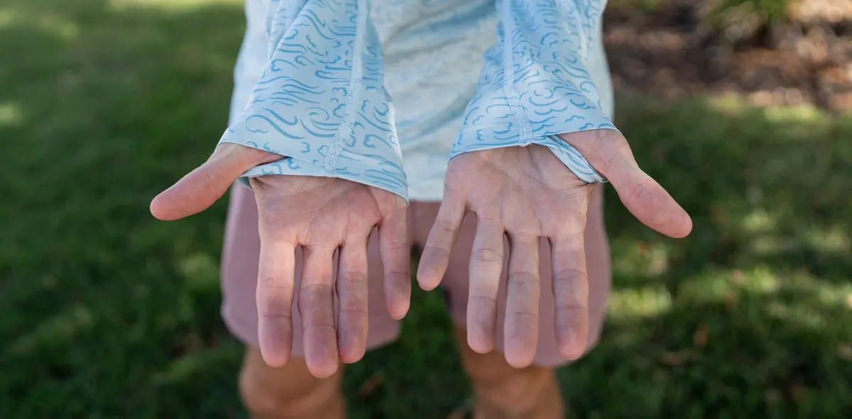 Combined with the fixed hood and sleeve thumbholes extending coverage down to your hands, you're getting meaningful full-arm sun protection for exposed days on the trail or the water without needing to layer sunscreen underneath.