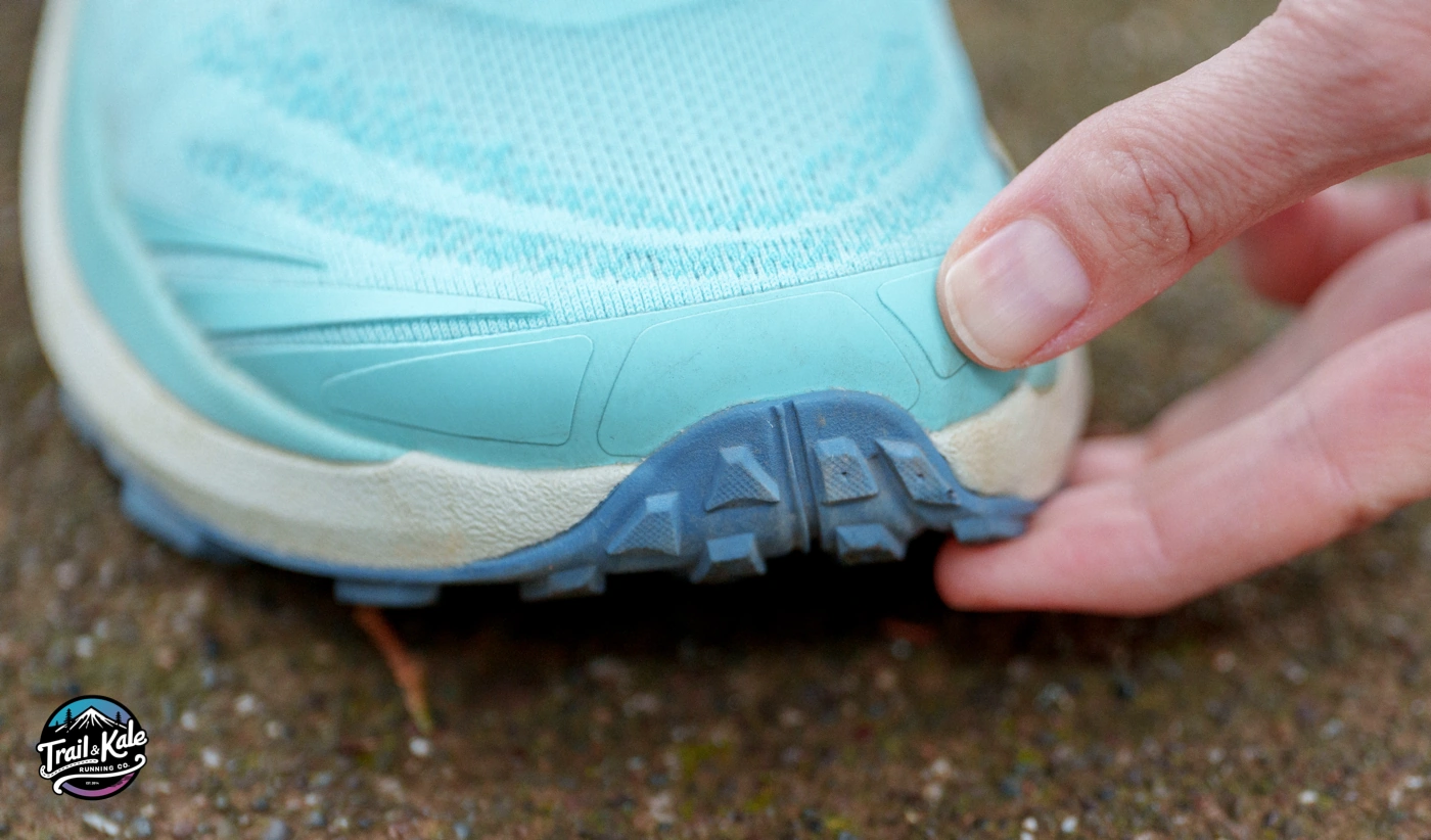 Speaking of protection, looking at the toe area, there is a firm overlay and the outsole lugs wrap over the toe, which not only protects the front of your foot but is especially useful for grip when running and hiking up steep inclines.