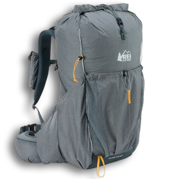 The REI Co-op Flash Air 50 Pack ($299) is where I'd start for most people. At 1lb 14oz (size M), it's REI's lightest backpacking pack and the one that makes the most sense if you're transitioning from a heavier setup. The 3D contoured hipbelt carries surprisingly well for the weight, and the 200-denier fabric will prove durable across varied terrain. It's genuinely versatile, and will be comfortable on both weekend trips and longer routes.