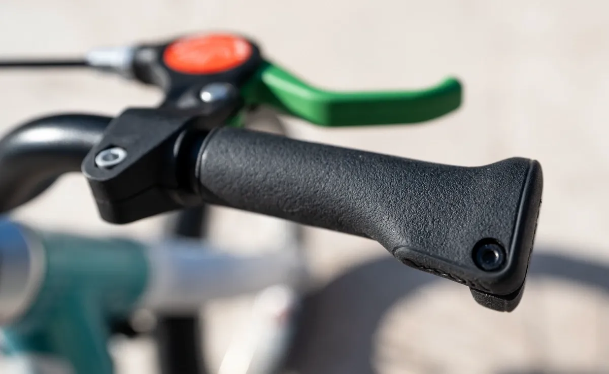 The GO 1 has a child-specific rear hand brake with a lever sized for small hands. I have not completely mastered it yet, feet are still my go-to, but I am starting to reach for it, and each time I do, I am picking up a real cycling skill instead of just a survival reflex.